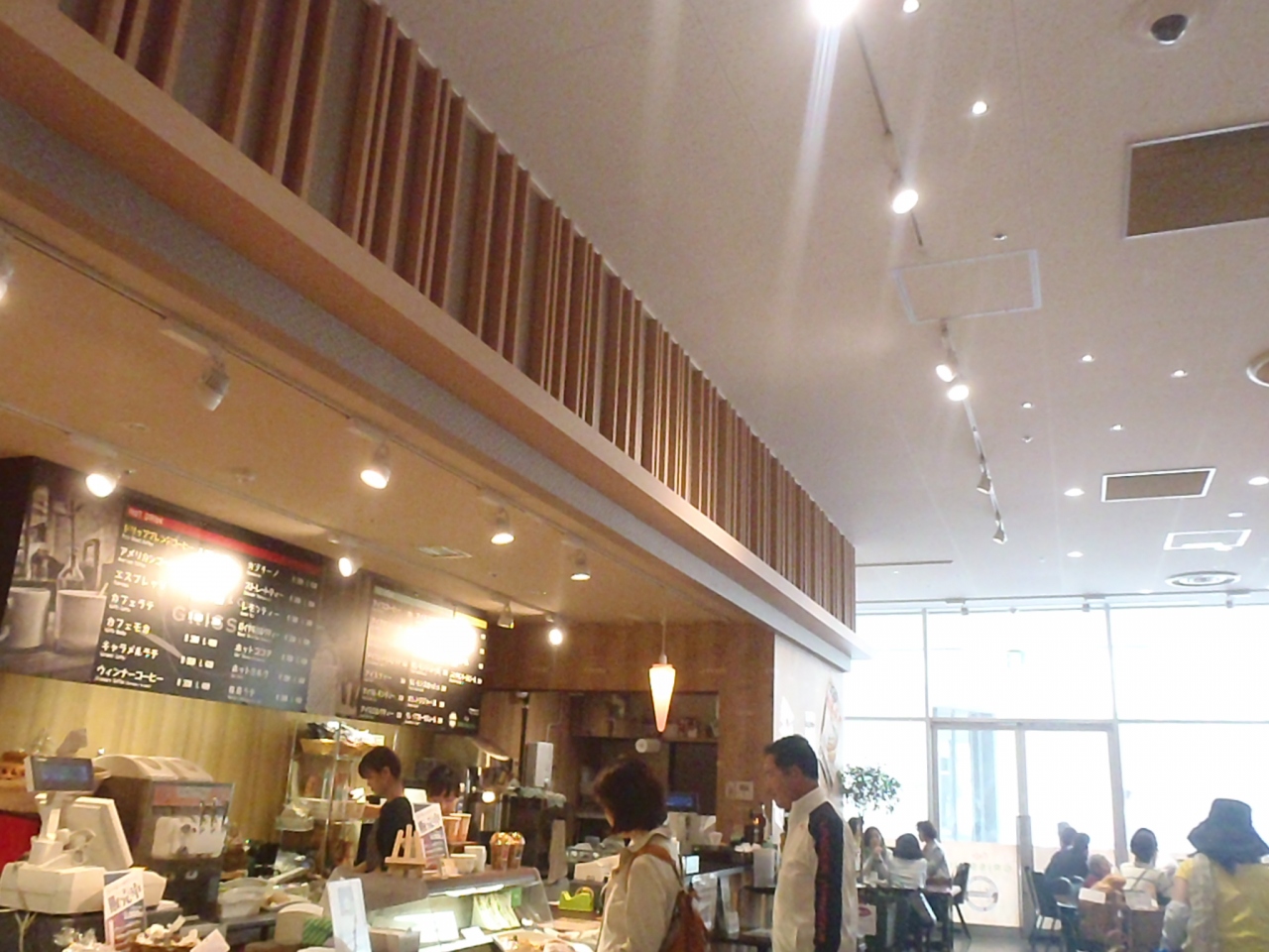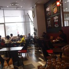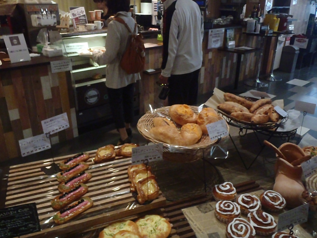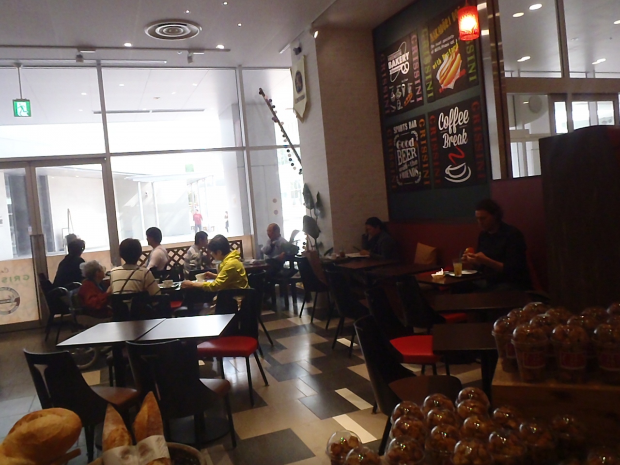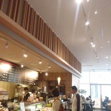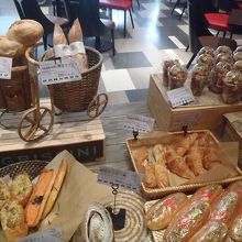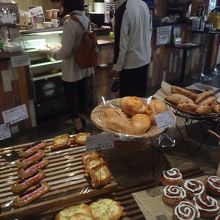 店内窓際にはテーブルスペースがあり、パン等を食べることができるカフェスタイルの店舗です。