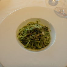 パスタは自家製サルシッチャと菜の花ソース パスタリングイネ。