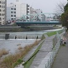 金沢市の千日町と片町一丁目を結ぶ橋で国の有形文化財に登録されています。現在の橋は大正13年に架けられた鉄骨トラス橋ですが、初代は前田利家が加賀藩主のころ1594年に犀川唯一の木造の大橋が架けられました。明治31年に新しい木造橋に架け替えられ大正8年に鉄筋コンクリート造に変わり大正11年に増水により流され13年に現在の橋に架け替えられました。