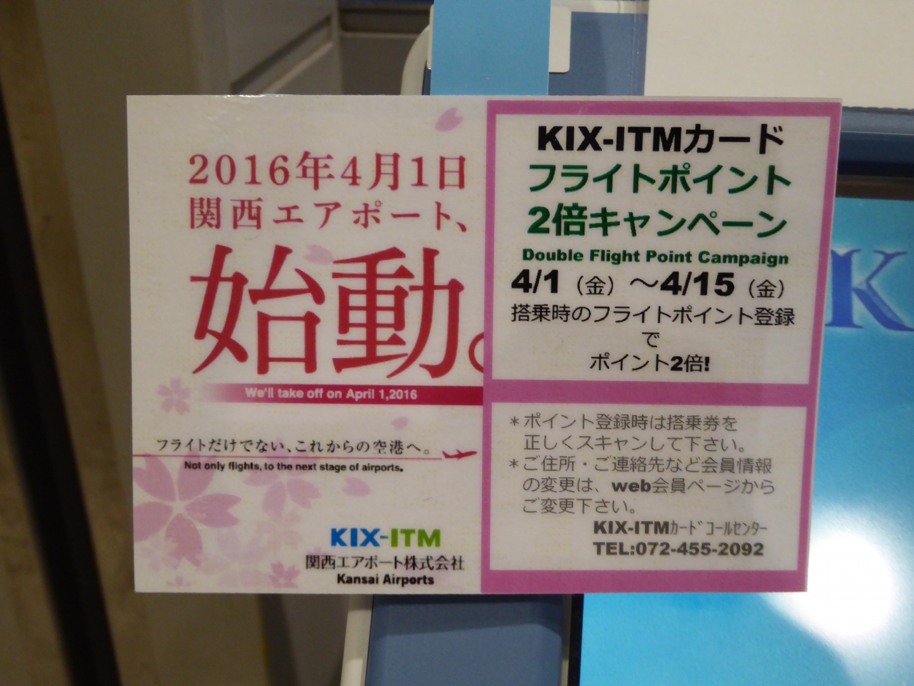 KIXITMカードフライトポイント2倍です(~2016/4/15まで)