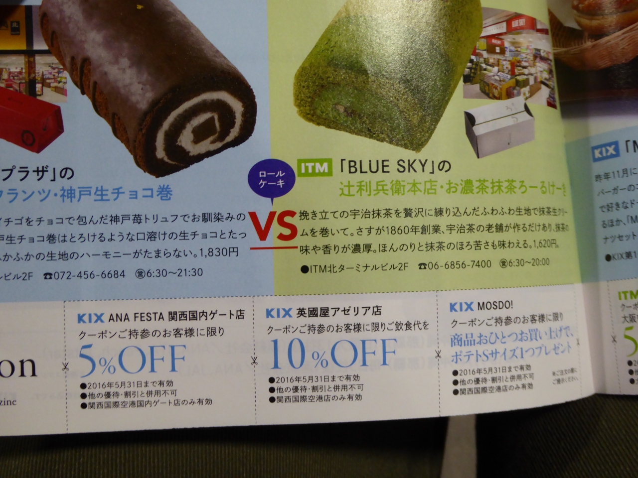 また空港が発行する冊子、KIX-ITM MAGAZINEは空港で使える割引券がついていますので、毎回空港へ来る際は確認したほうがいいですよ。