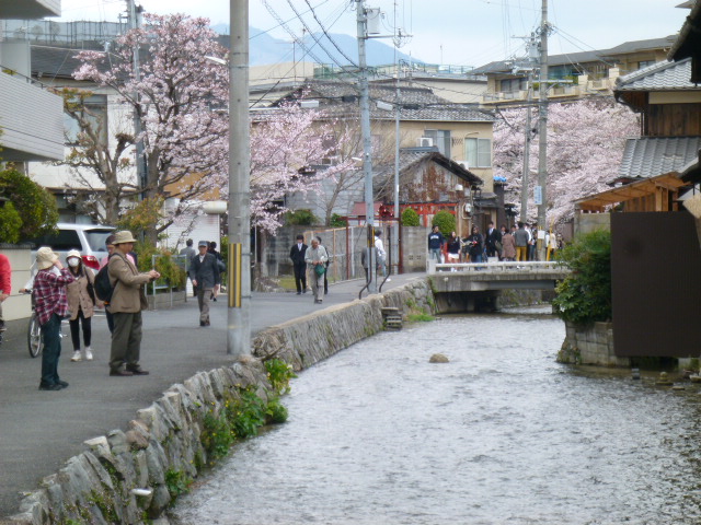 今年も満開の桜が咲いています。インクラインから平安神宮へと琵琶湖疎水沿いを散歩しここ「三条通白川橋」に来ました。ここまで疎水沿いには満開の桜が上品に華やかに、そして情緒良く咲いている姿を見ることができました。そしてここからさらに下がります。えぇー、ここからは桜はありません、疎水沿いには青々した柳並木です。またこれも情緒がありますね。さぁー祇園白川までもう少しです。良い散歩道ですね、みなさんもどうぞ散策を。