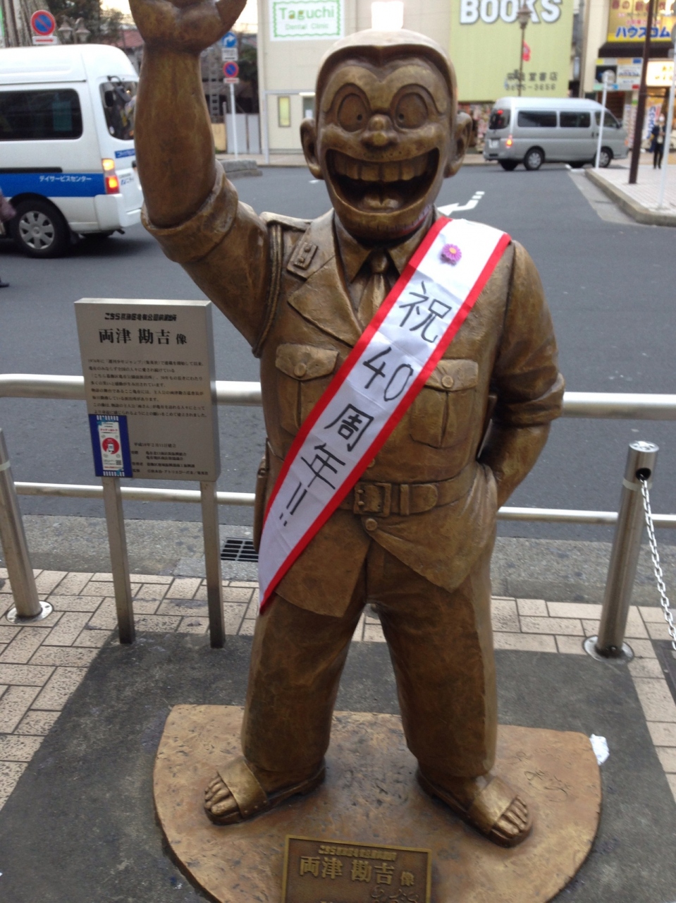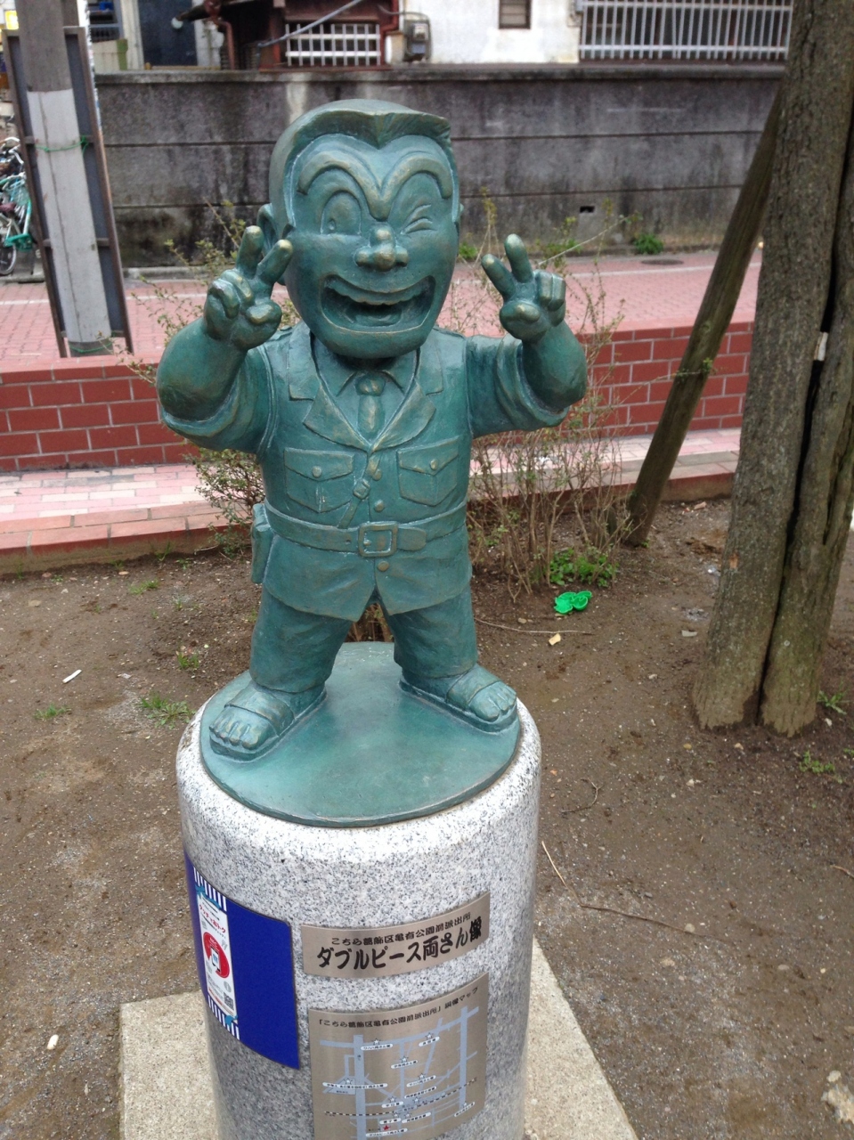 亀有駅周りと少し足を伸ばしたエリアに こち亀のキャラの像が点在しています。駅前の公共の地図にも 場所が記されている程の人気の高いスポット。 両さんは色んなバージョンがあるので、こち亀の話をよく知る人なら場面が蘇り感動ものでしょう。