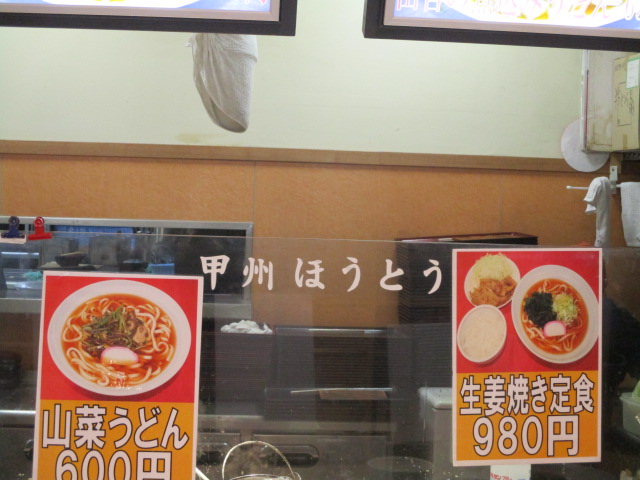 とても賑わっていて人が一杯。天気のよい土曜日の昼下がりです。ちょっと休憩しようにも席がなかなか取れない。やっと席を確保して注文に向かうも、なかなか時間がかかります。レジが遅い・・電子マネーがあまり使えないから?ネクスコでメインで使えるはずのワオンが使えず・・エディなのかな?注文終わって呼び出しベルを持たされましたが、なかなか出来ない・・でも、名物のほうとう食べられました。