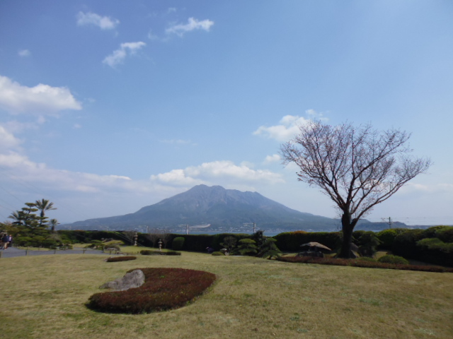 仙巌園の中の御殿あたりからの桜島は最高の桜島ビューポイントです。仙巌園の庭園を越しての桜島の絵は素晴らしいの一言です。