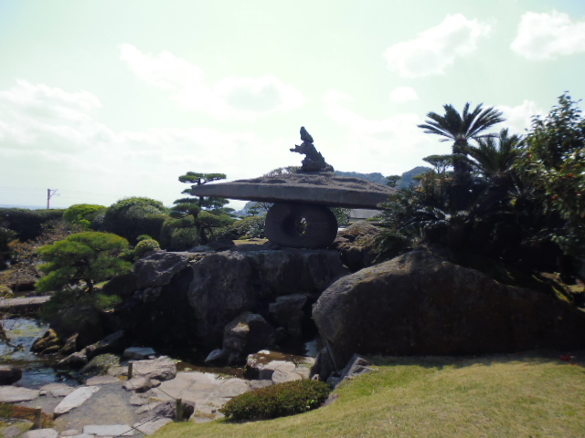 正門を過ぎ、錫門も過ぎ、御殿を見渡せるあたりの庭園にあるのが、ここの獅子乗石燈籠です。大きな石燈籠で、日本一とのことで、庭に映えています。