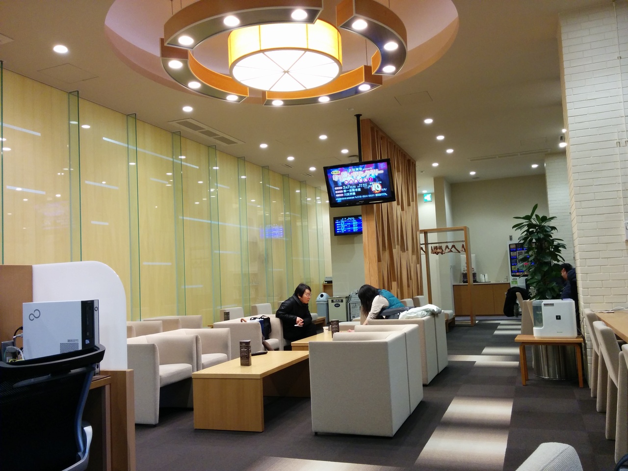 ラウンジの場所は、到着ロビーから右手に進んだ左手のエスカレーターで2階に上がり、左方向に行くと左側にラウンジがあります。