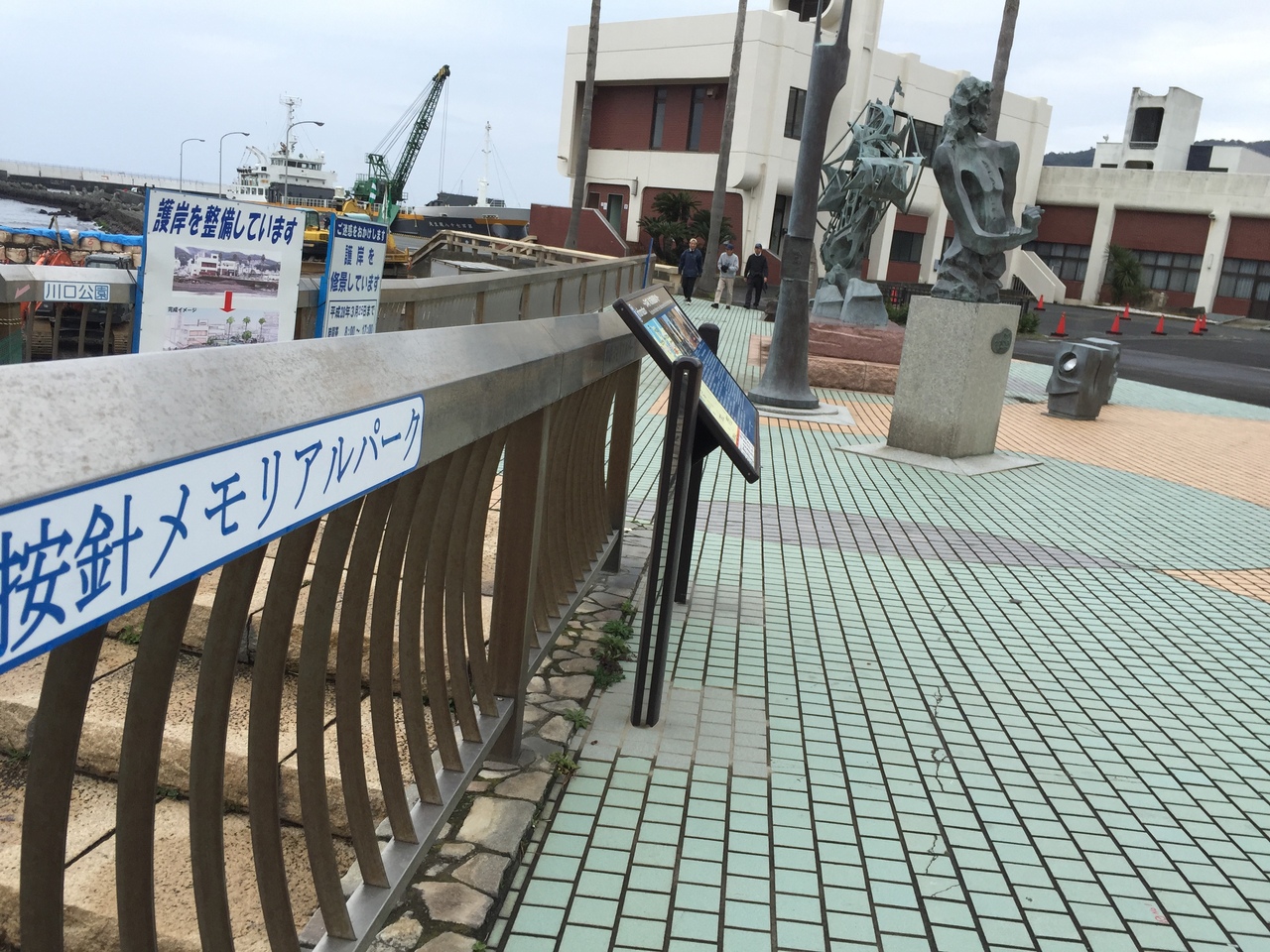 松川遊歩道を歩いて海岸に出る前の橋のたもとにあります。公園というより、空いたスペースにたくさん三浦按針にまつわるモニュメントを置いたという感じのところです。ここは、対岸にあるなぎさ公園や海を眺めるのに適した場所でもあります。