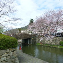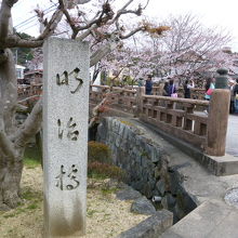 今日は近江商人で有名な近江八幡の散策です。JR八幡八幡駅より八幡堀で有名な八幡山城付近にきました。達筆な字で書かれた橋が架かっています。何と書いてあるのか読むことができません。その時はマップを確認します。「明治橋」とのようです。う~ん。八幡堀に架かった橋です、情緒があり写真スポットですね、さぁー堀沿いの遊歩道を散歩します。