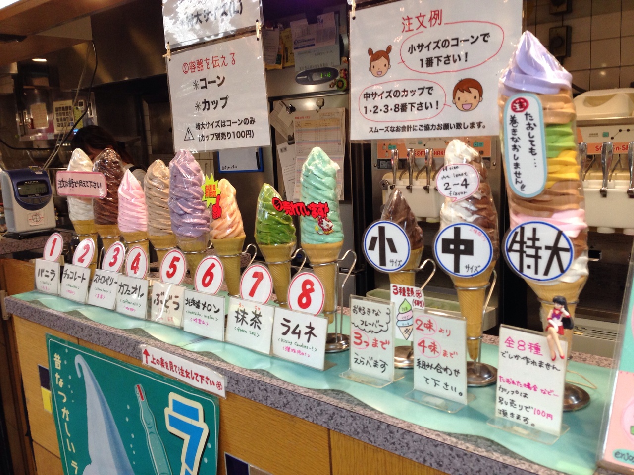 メガ盛りとか流行るずっと前からここのソフトクリームは背が高かった。一番大きいカラフルなソフトクリームは一度は食べてみたい。高校時代 オーダーしたら、店のおっちゃんに『無理だから辞めろ』と頼ませてもらえなかった思い出が。