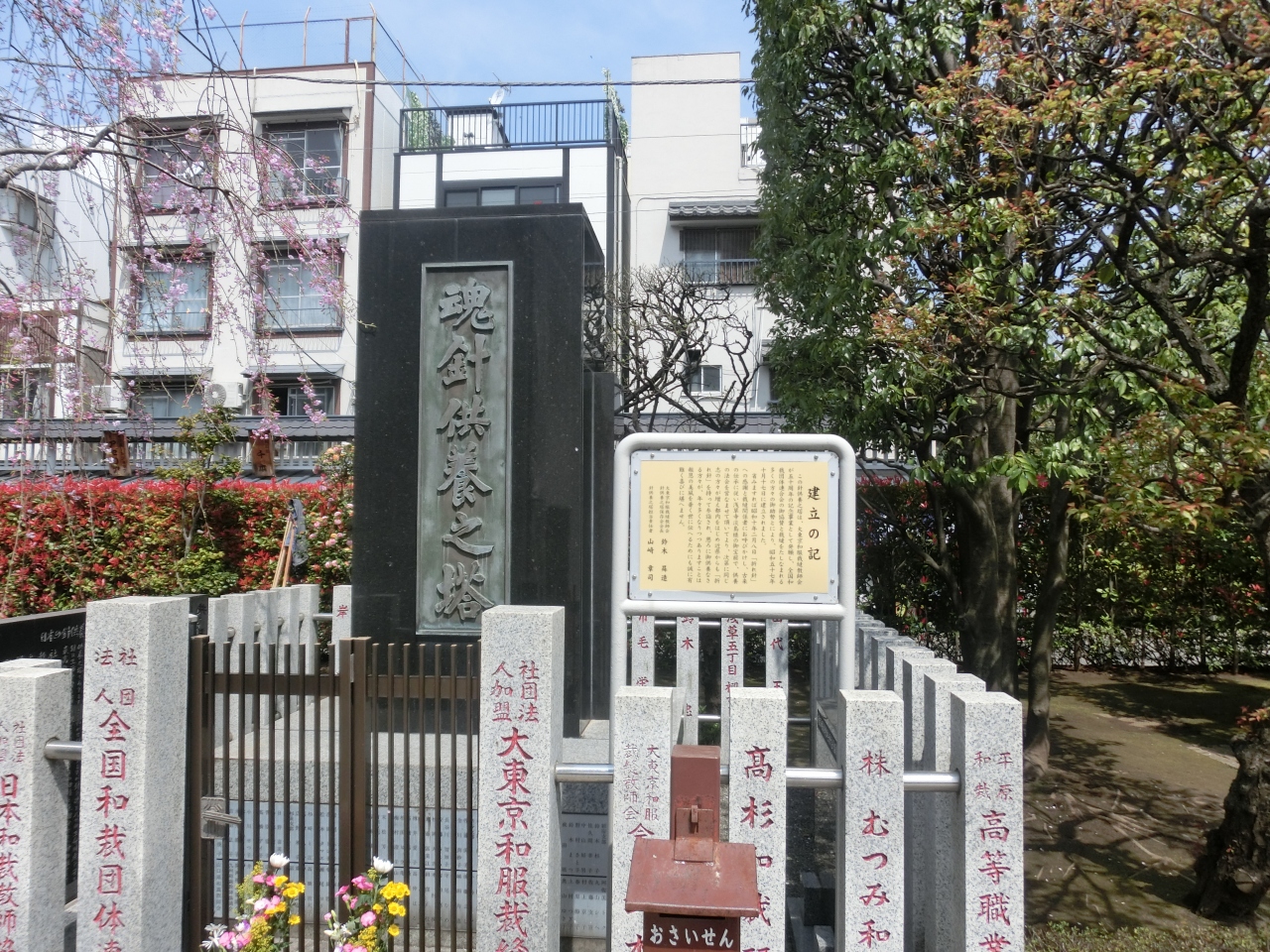 あわしま堂前には、1982年に、服裁縫教師が建立した「魂針(こんしん)供養之塔」がある。