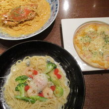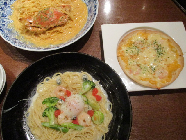 池袋ヤマダデンキ総本店は昔の池袋三越。7階のレストラン街には、夜はがっつり系、食べ放題の店が多いです。その中でこちらはパスタやドリアだけでもよいし、セットにしてドリンク、ミニピザ、デザートなどをつけてもよいし、普通の量の夕食が食べられるお店です。でもパスタの場合、SMLサイズ選べて、Lを頼むとがっつりになってしまいます。味は普通に美味しいです。