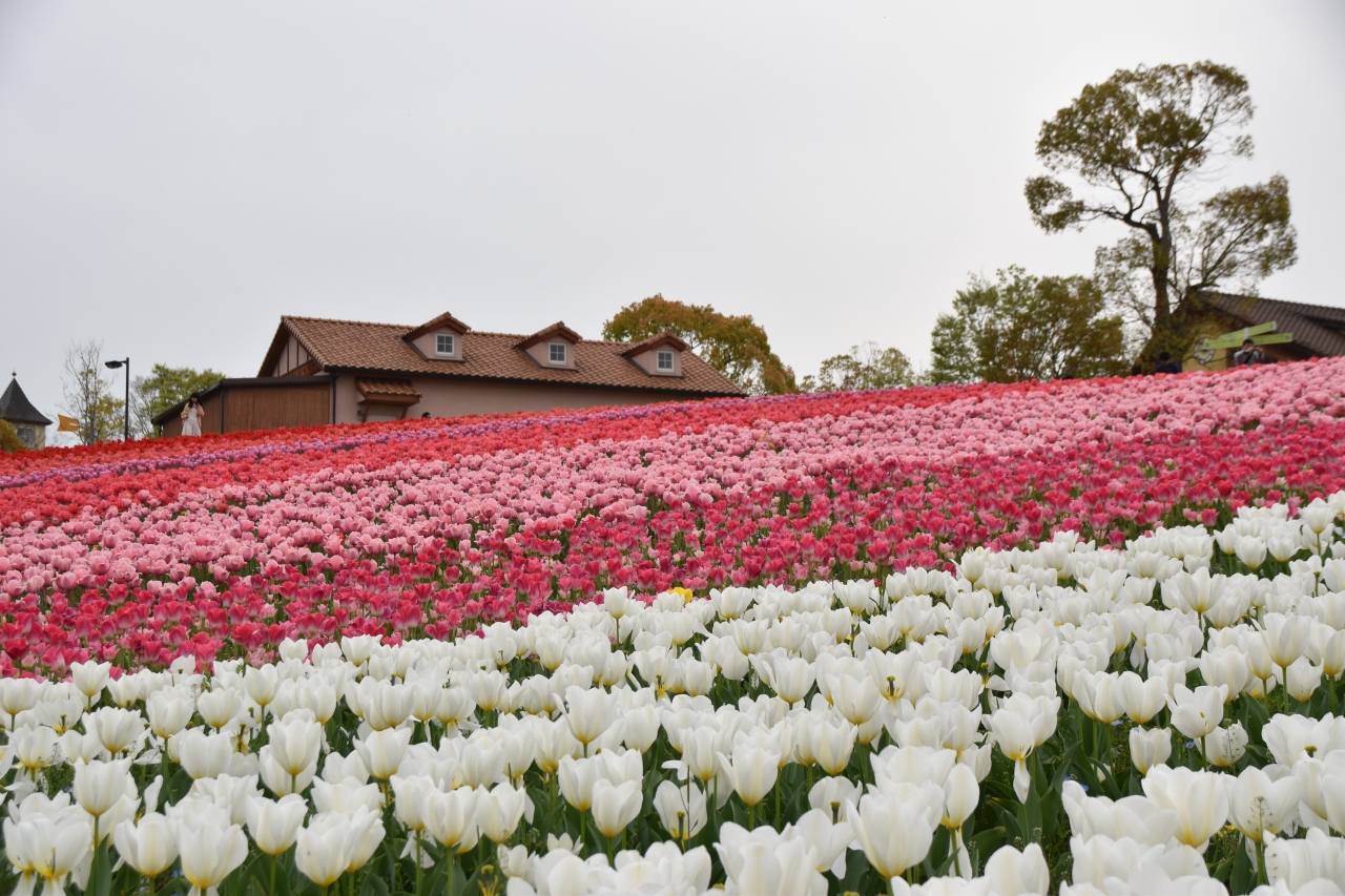 この時期はチューリップが咲き誇り綺麗なグラデーションでとても綺麗かった。