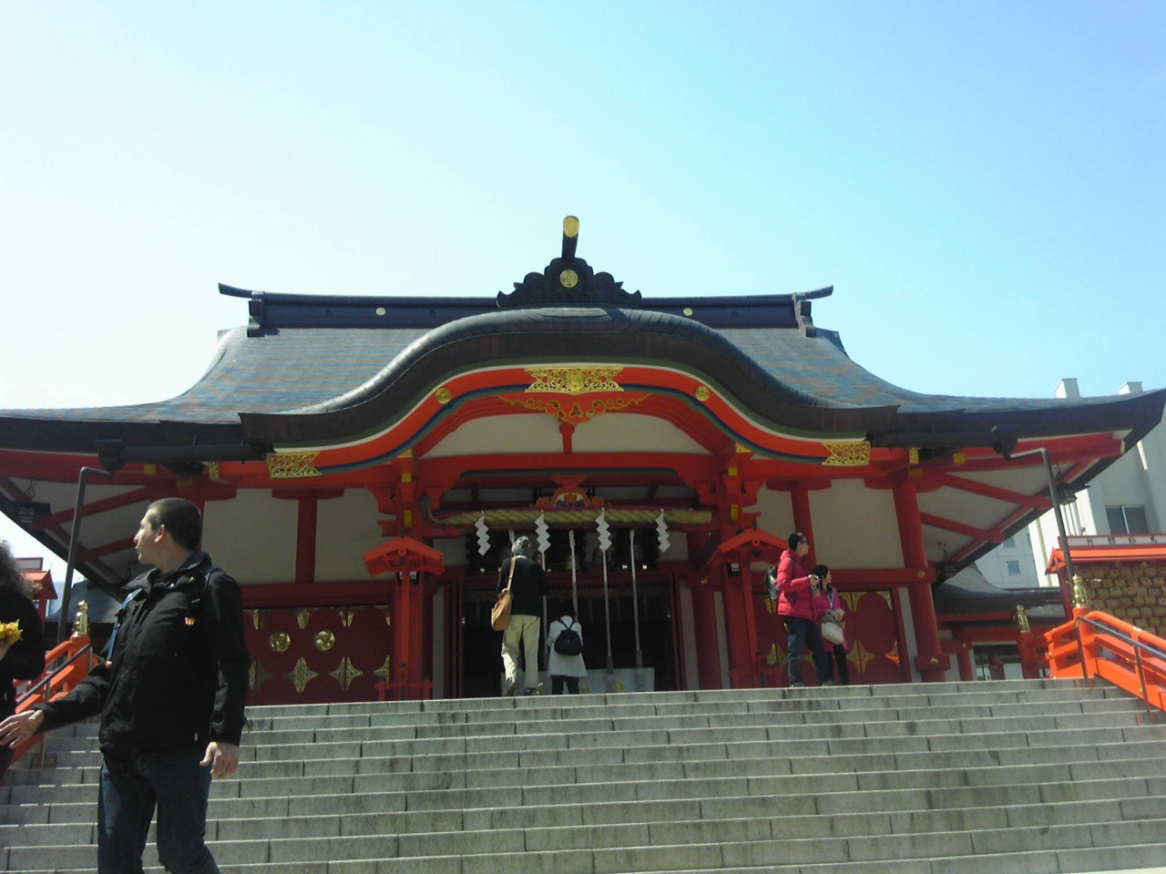 地下鉄の新宿3丁目駅からすぐのところにあります。朱色のきれいな建物で、敷地内は広々としており、都会の中のオアシスのようなところでした。桜の木もあり、散りかけてはいましたが、満開時期はお花見にはとても良い場所です