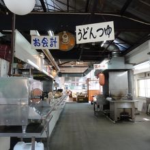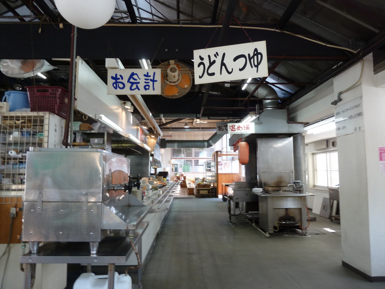 港のゴルフコース近くに位置し、製麺所の工場脇にあるうどん屋さんです。