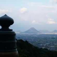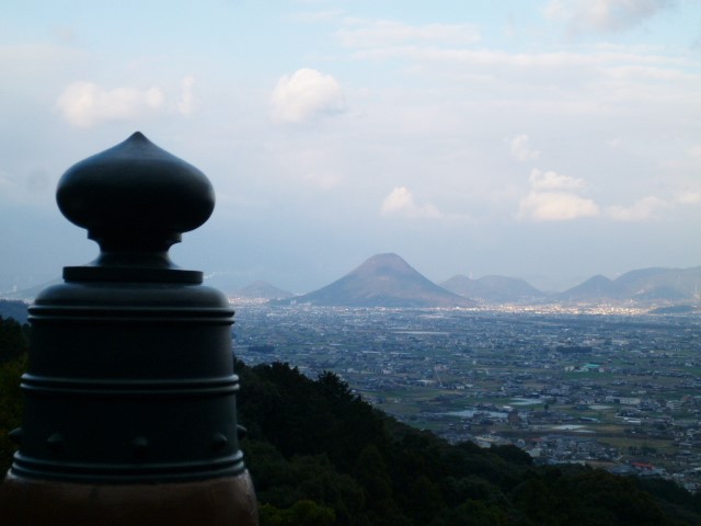 さぁーここは「金刀比羅宮」の御本宮がある頂上展望台(高台)です。途中何度となく休憩しながら785段を登りました。少々疲れましたが汗に程よい風が当たり気持ちいいですね。頑張ったねと自分を褒めてやりたいです。眺めが良いですね、都会と違って大きなビルはなく、讃岐平野ののどかな風景が素晴らしいです。さぁーこれから御本宮など参拝し下山します。奥社まで行く元気はありません。