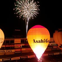 バルーンフェスティバルの競技に参加するチームの気球が勢揃いし、チームの紹介をしたり、音楽に合わせて気球を点灯させたり、最後には花火も上がりました。