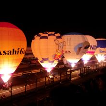 夜間の気球の点灯はイルミネーションの様でとても綺麗でした。