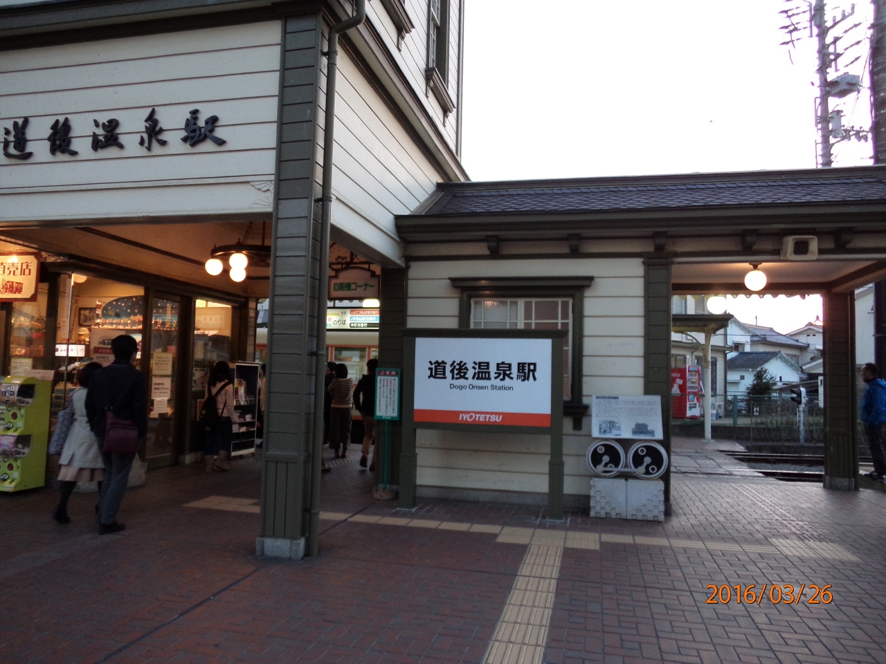 道後温泉に行くには、市電の道後温泉駅からいく。改札をでたところに、坊ちゃん電車が飾られている。市内で遭遇するにはタイミングがあるとおもうのか、記念撮影をする人がたくさんいた。駅を出るとアーケードがあって、そこをぬけて道後温泉に向かう