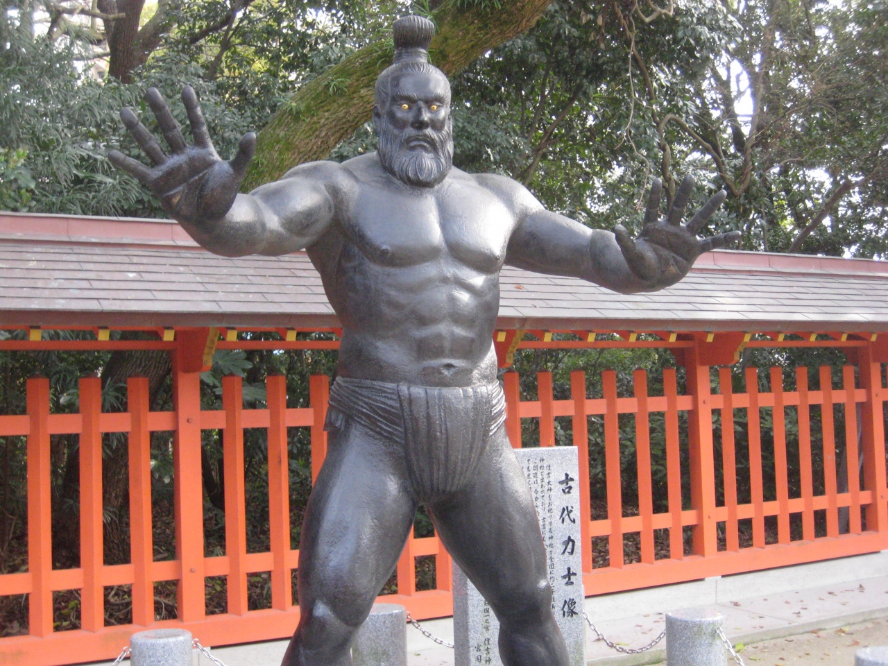 大通りから少し中に入ったところにあり、車の音はほとんど聞こえず静寂さがあった。敷地は広くて、本殿の脇にある力士像の手には「力」と書かれているのが印象に残っている。複数の御利益の神様がまつられている神社だった。