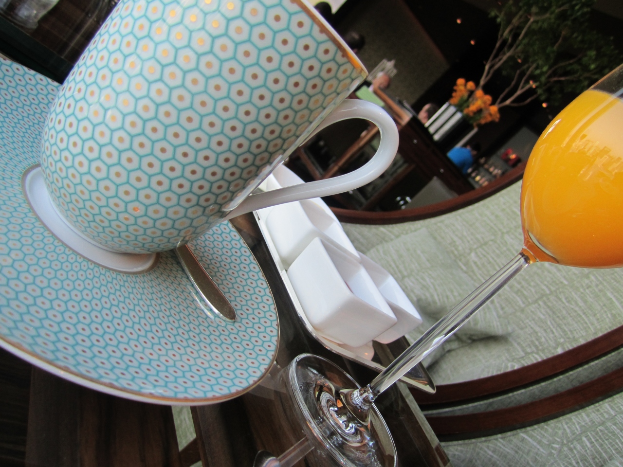 午前中の商談が急遽キャンセルとなり、そのままマンダリンオリエンタル東京のオリエンタルラウンジで朝食をいただきました。平日の午前9時だったので、ラウンジには外国のビジネスマン一組と、外国の夫妻が一組だけで落ち着いた感じでした。女性の日本人マネージャーの接客も良かったです。ただ、窓際のソファー席だったので、少し食事するには…。