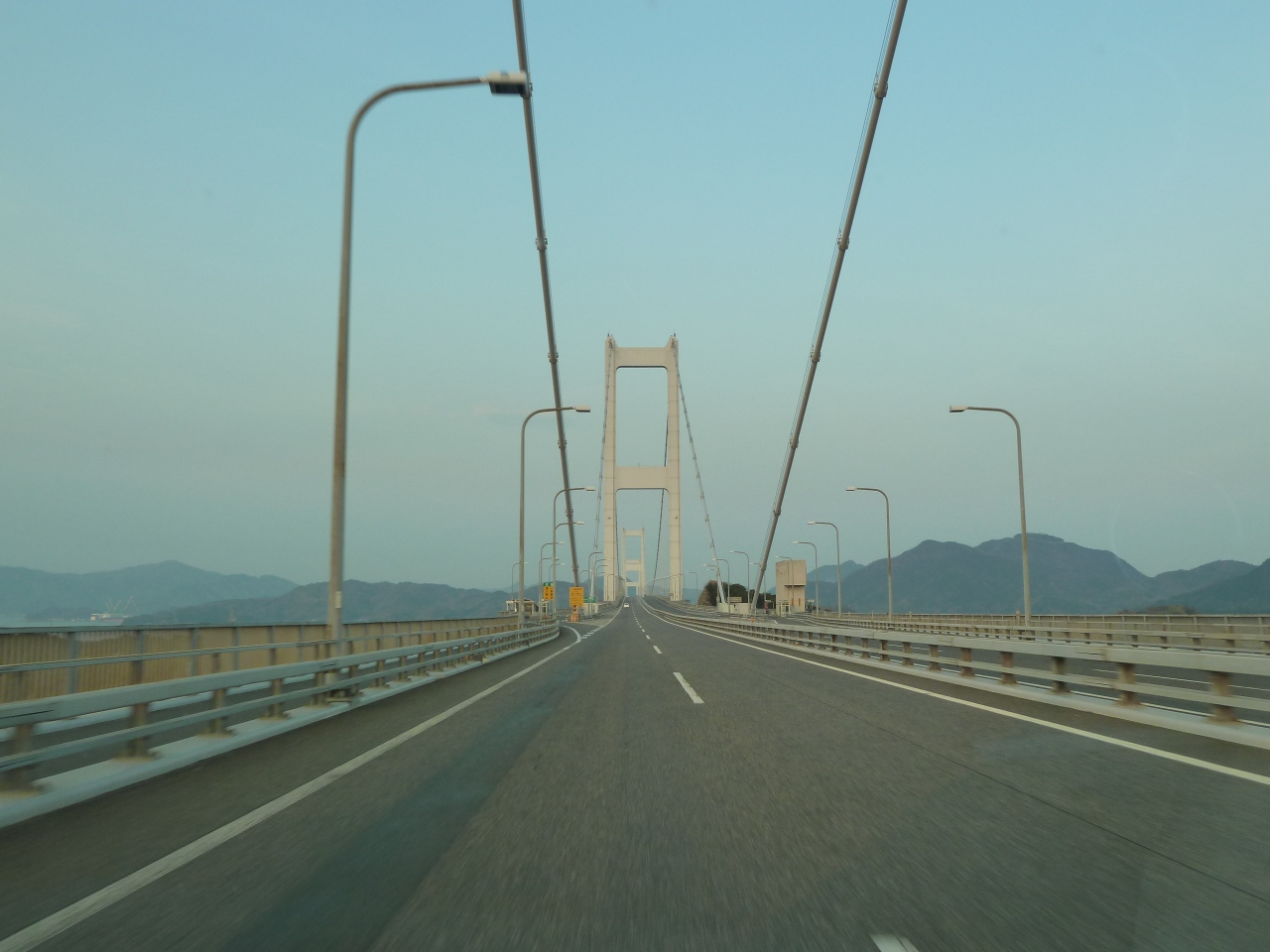 世界初の三連吊橋だそうで、しまなみ海道の中でもいちばん長い橋です。