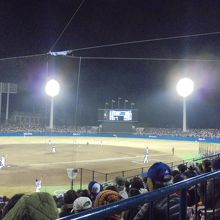 2016年プロ野球公式戦ファイターズ対ソフトバンクの試合が行われました。ファイターズの増井選手のふるさと。静岡鉄道の静岡駅から県営球場前で降りて徒歩5分。4月1日ちょうど桜が満開でした。野球の試合も盛り上がりました。風は強くて寒かったです。