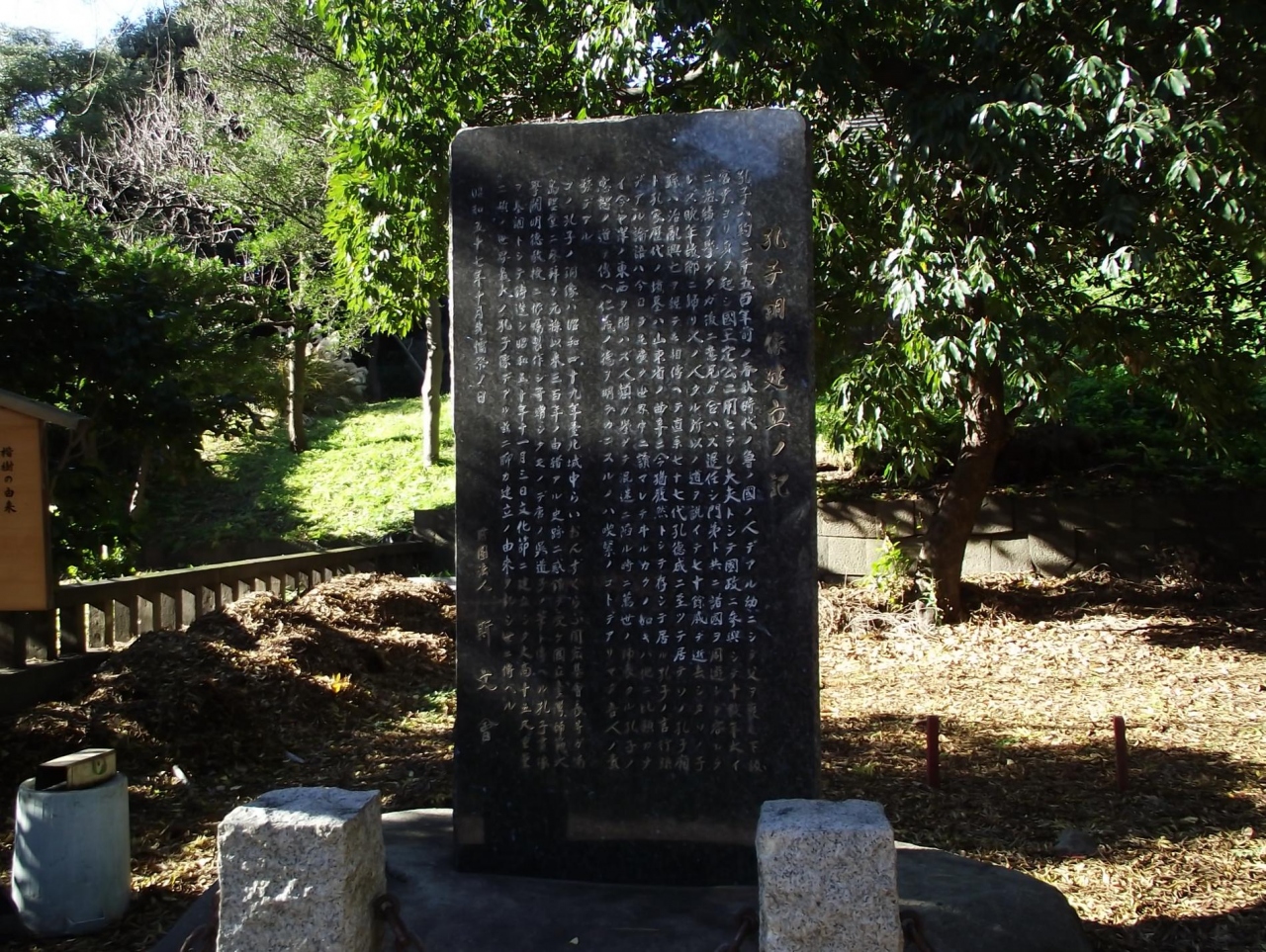 ここには、孔子銅像建立ノ記 と言う石碑もあり、難しい文字もありやや読み難いが、孔子の略歴や銅像建立の経緯などが分かります。