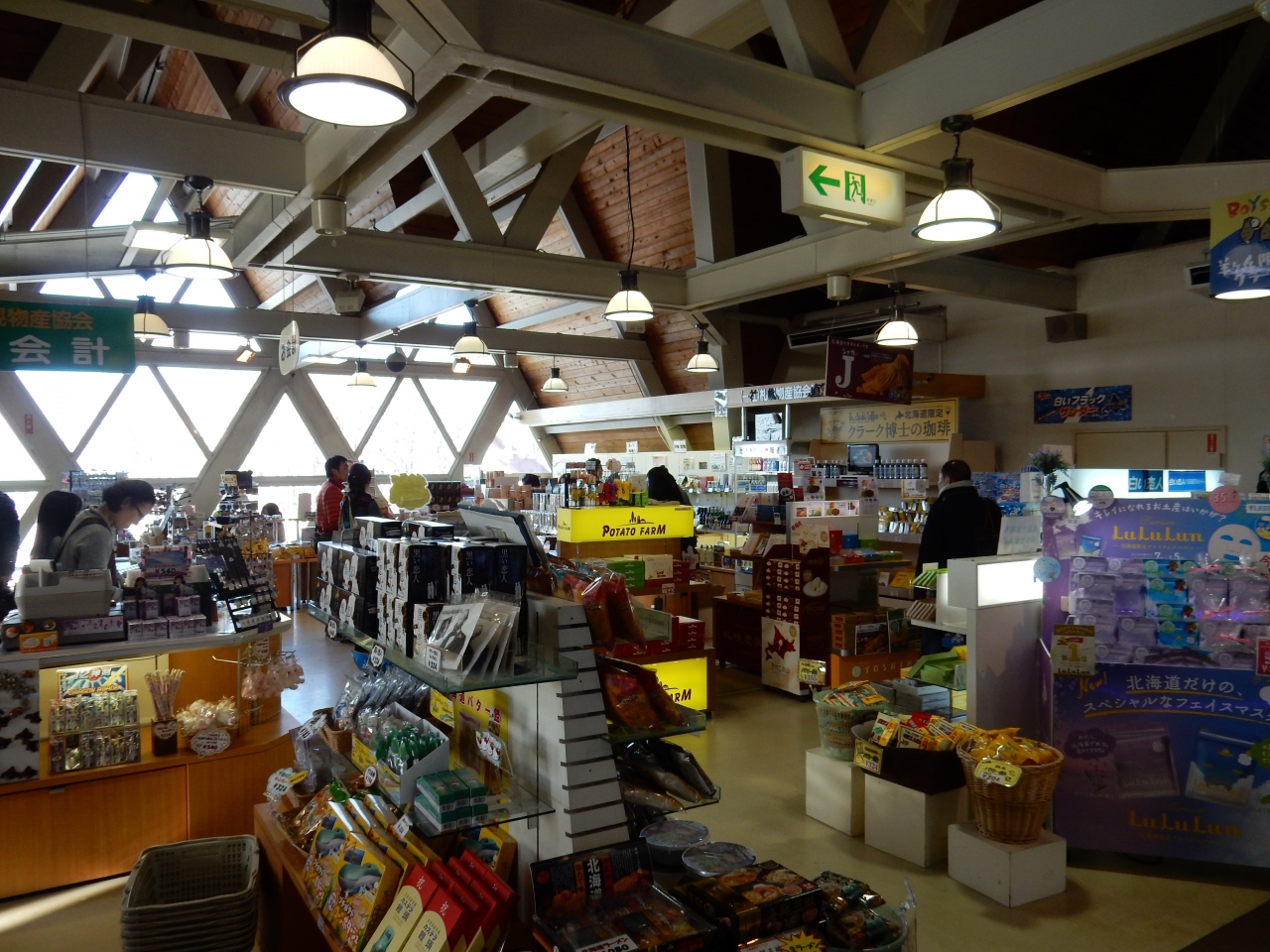 1階にはコーヒー屋さんやテイクアウトのソフトクリーム屋さん、2階には北海道の名産品を扱うお土産屋さんがあります。