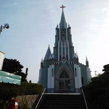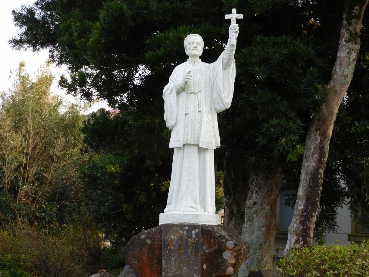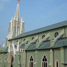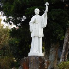 坂道を登って行った所に教会がありました。淡いグリーン色の美しい教会でした。訪れたのが夕方17時過ぎだったので、内部は見学が出来ず、外から見るだけになってしまいました。教会の脇には、聖フランシスコ・ザビエル記念像もありました。