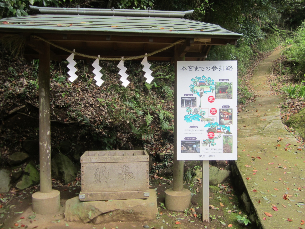 伊豆神社の本宮は、この社殿から、山の上部にあり、山道を55分程度登るとの事、