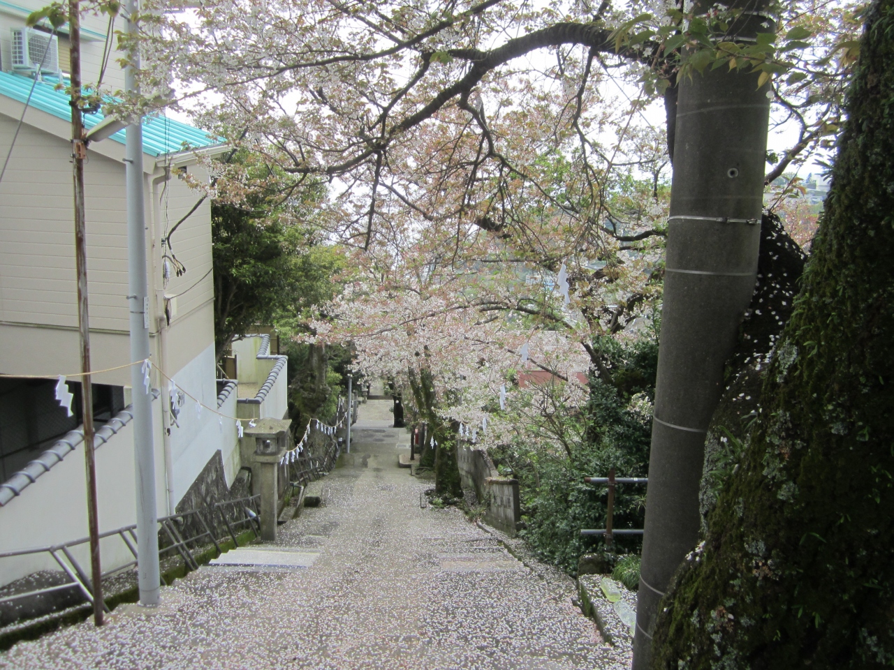 伊豆山神社は、海辺の熱海ビーチラインから、長い登りの階段になっており、