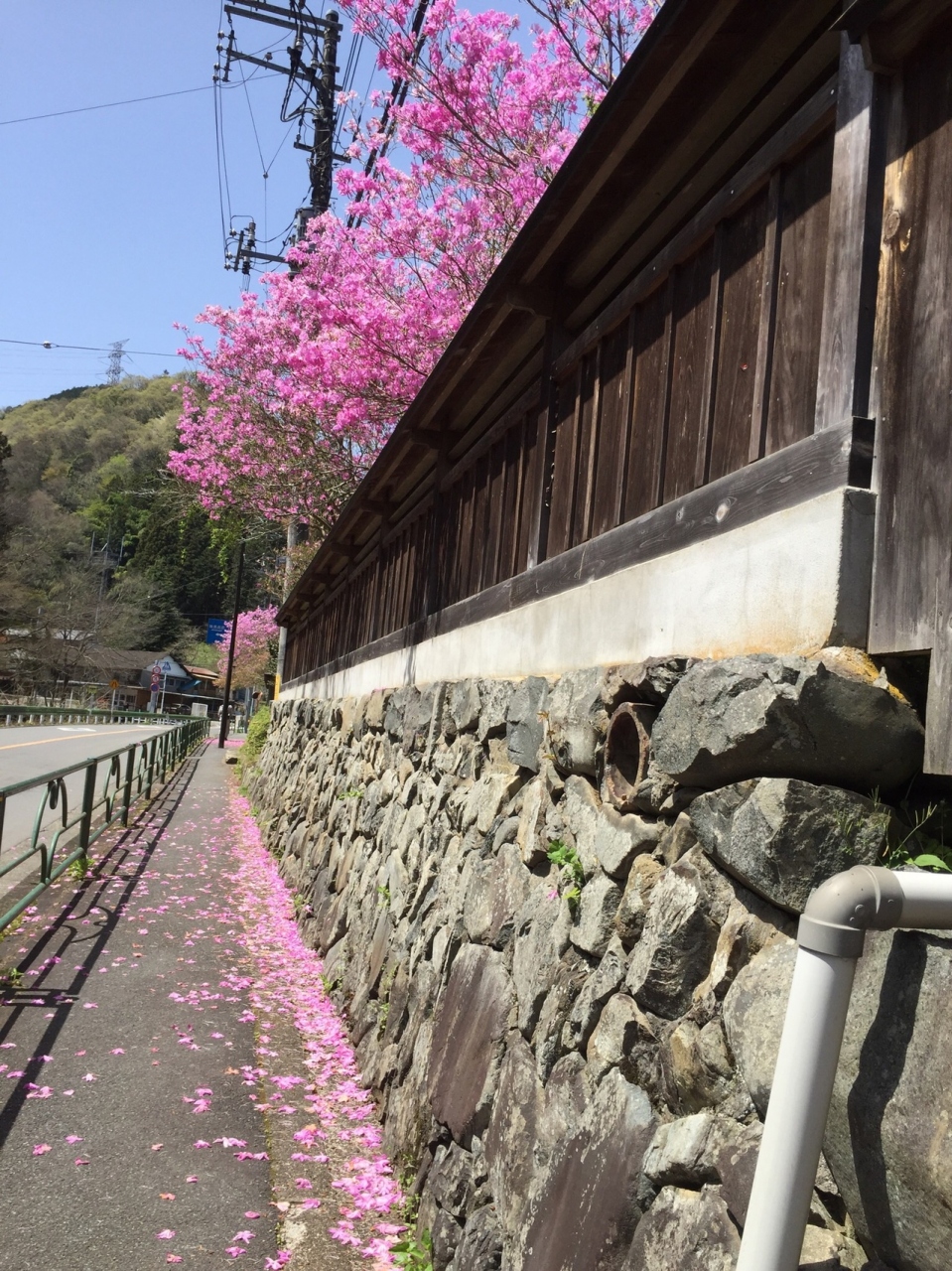 陣馬街道を歩くので、車に気をつけながらものんびり歩け、道端のスミレやまだ残っている自然の桜にはうっとりでした。