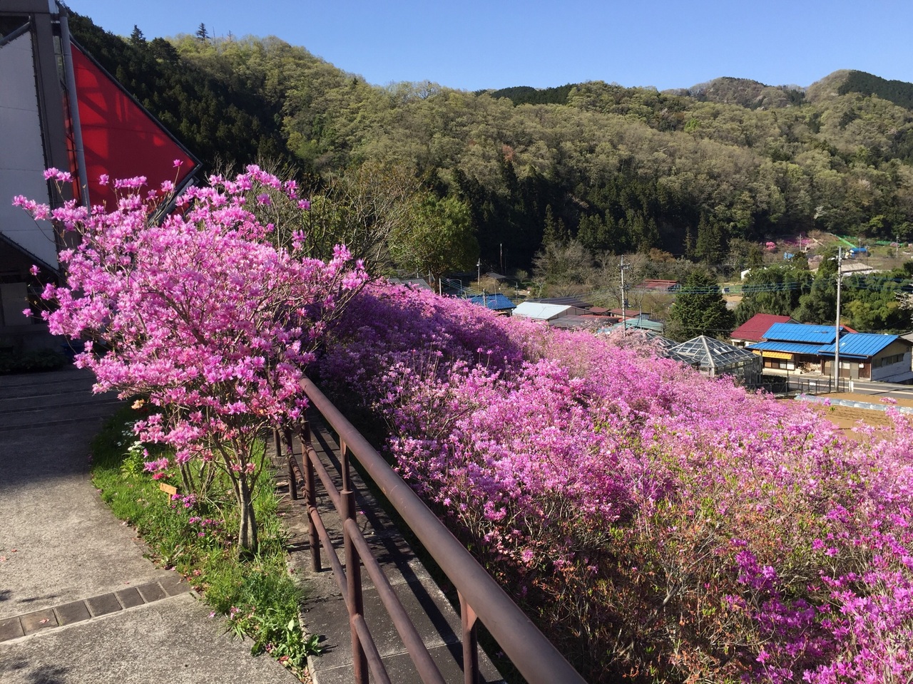 夕やけ小やけふれあいの里は、200円入場料がかかりますが、今の時期は、山一面に咲いたミツバツツジを眺めるだけでも価値があります。ぜひぜひです。