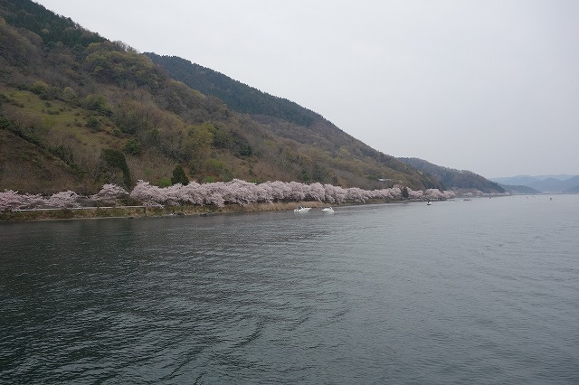 日本さくら名所100選にも選ばれている海津大崎の桜並木を