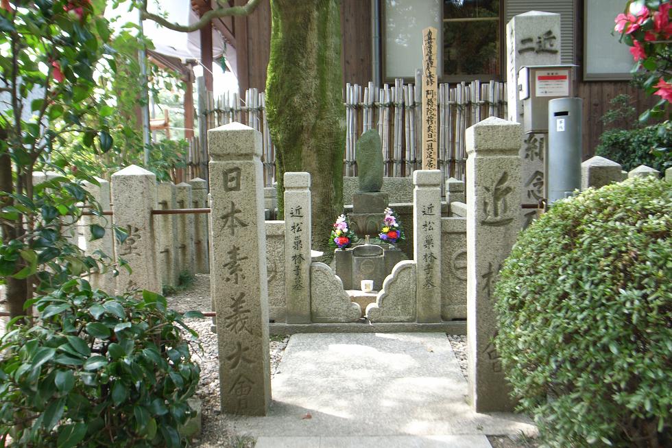 福井藩の武士、後大阪で義太夫作家となった近松の墓がこの地にある。浄瑠璃作家としてスタートした時は京都に住んでいた。心中事件などがあると、京都から大阪まで事件を