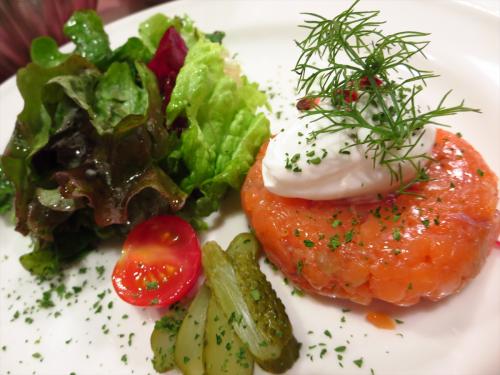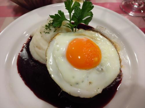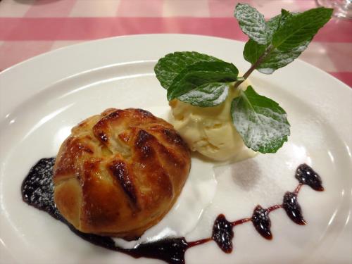 1000円のワンプレートランチセットはとてもお得でおいしそうでしたが、久しぶりの再会だったので、5000円の新年特別フェアのコースを注文しました。一番最初に出てきたのは自家製オリーブ。いつもはオリーブが苦手で食べない私も、このオリーブはとてもおいしくいただけました。そして、前菜はサーモンマリネのタルタル サワークリーム添え、人参のポタージュ フォアグラオイル。クレッソンのシャーベットがお口直しに出て、メインはオーストラリア産牛ひき肉のステーキ 目玉焼きのせのシュヴァル風 赤ワインソースを注文しました。デザートは、洋ナシのパイ包み焼き バニラのアイスクリーム添え。あったかい洋ナシのパイと冷たーいアイスがマッチしていて、カラメルが香ばしくて大人の味。全体的にそんなに甘くなくて、気に入りました。大満足のフレンチコースでした。