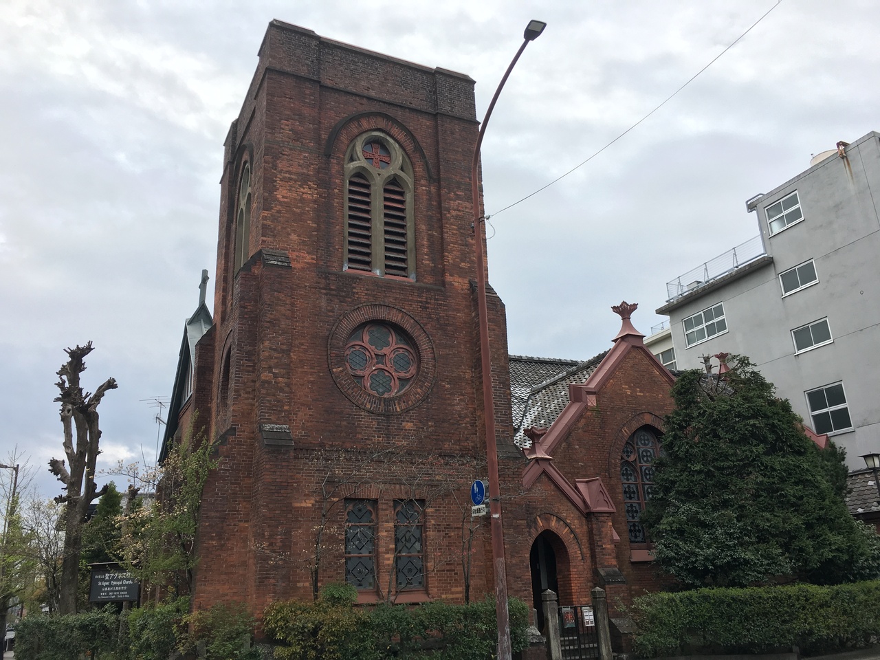 京都御苑から烏丸通を隔てた東側にあります。道路の角地にあるため、全体が見通せ綺麗です。日本聖公会京都教区に所属する教会で、隣にある平安女学院の礼拝堂です。明治31年竣工で京都市指定文化財らしいです。早朝礼拝は参加できるらしいです。