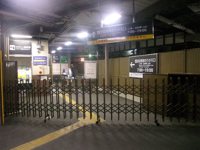 今回はJRで奈良線の東福寺駅まで移動しましたが、その理由として京阪に乗り換えることがありました。専用の乗換口がホームに直結しているので便利だなあと見ていたら、何とこの乗換専用ゲートは19時に閉まってしまうとのことで、僅か5分程過ぎてしまっていたが故に、わざわざJR改札を出てもう一度通常の京阪改札に移動する羽目に陥りました。東福寺はそれ程大きい駅でもないですし、京都の都心からですと、そのまま三条京阪や四条の駅に出て京阪を利用される方が多いと思われますので、この時間設定はある意味仕方がないのかもしれないですが、それにしても19時に閉まる、というのはちょっと早過ぎるかなと思いました。