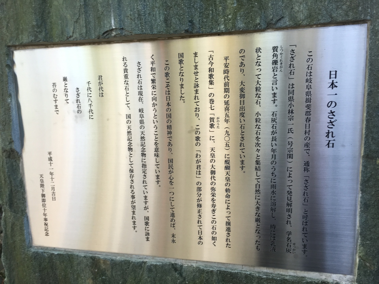 京都御苑の近くにある護王神社の境内の西北あたりにありました。大変おめでたい石で、神霊が宿ると言われています。石灰岩が雨水に溶解し集まり大きな岩の塊になるらしいです。日本最大で、岐阜県揖斐郡産出とありました。