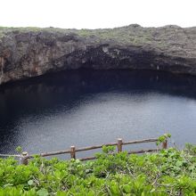 伊良部島を代表する観光スポットで、沖縄県の天然記念物に指定されています。下地島の西側、琉球石灰岩が露呈した高台にぽっかりと二つの大きな穴が並び、深いコバルトブルーの海水をたたえています。池の大きさは内陸のほうが直径約55m、水深約40m。海側の池が直径約75m、水深約50m。池は外海とつながっているため、海から入って池の中に浮上することができ、有名なダイビングスポットにもなっています。