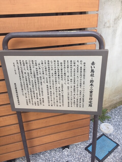 この目白の千種画廊は、大正期に童話雑誌の赤い鳥を創刊した児童文学者である鈴木三重吉の旧宅跡地にあります。