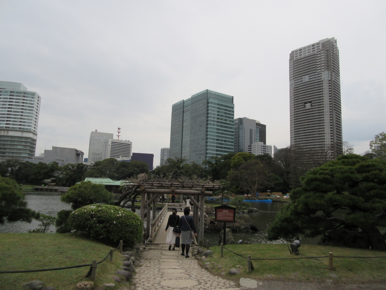 浜離宮恩賜庭園にある「潮入の池」にかかっている木造の橋です。池に浮かぶ中島へ渡ることができます。中島には「御茶屋」があって抹茶がいただけます。