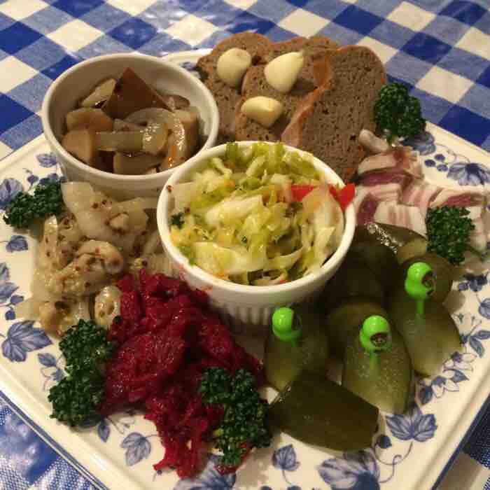 お料理は、ロシア料理の前菜盛り合わせ、ピロシキ、ペリメニ、ビーフストロガノフなど、代表されるようなものを頂きました。