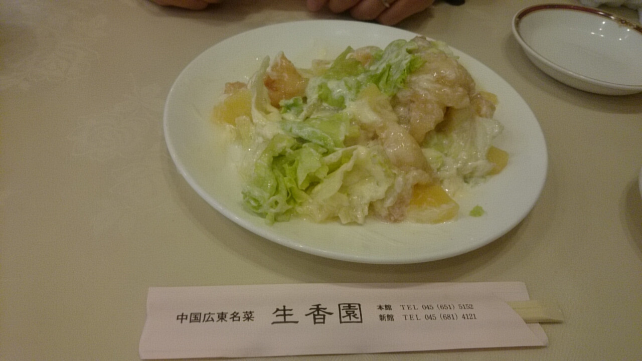こちらの海鮮焼きそばがおススメと言われ、食べに行ってきました。馬車道駅からも近く、5番出口からまっすぐ歩くと最初に新館に、もう少し歩くと本館に到着します。店内には著名人と周さんが一緒に撮った写真が壁に掛けてありました。今回は海鮮焼きそば、海老マヨ、蟹爪を頼みました。最初に海老マヨが出てきました。テーブルでお店の方が混ぜてくれます。マヨネーズと卵白を泡立てたメレンゲも入って混ざっているような感じがしました。海老はたくさん入っていて美味しかったです。次に海鮮焼きそばがきました。取り分けのお皿をくれなかったので、催促しました。量は多く、具沢山でした。美味しいのですが、味が濃いです。次に蟹爪も来ました。こちらも美味しいのですが、しょっぱかったです。