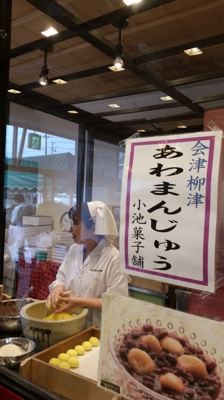 名物あわまんじゅうは実演販売されており行列ができてました。