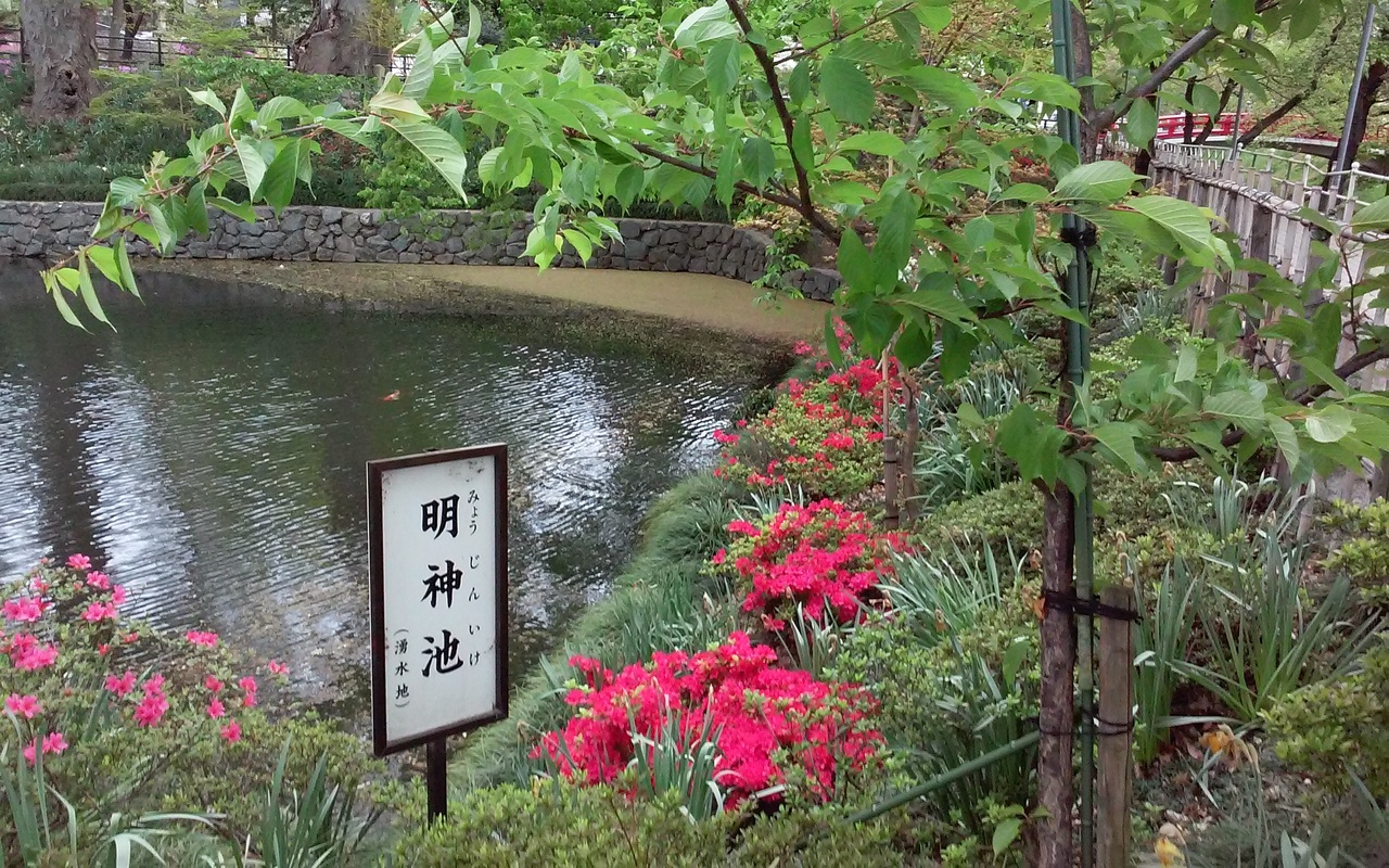 駅の真ん前です。広~い敷地の中には、池や児童公園などもあって、地域に密着しているなと感じられる雰囲気です。境内に参拝者のための駐車場がありますが、他にも線路沿いの月極め駐車場の中にも6台分キープしてあります。