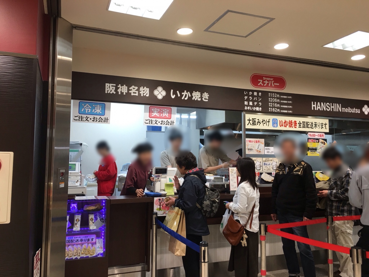 梅田の阪神百貨店の地下食料品売り場の阪神名物いか焼きを目指す。