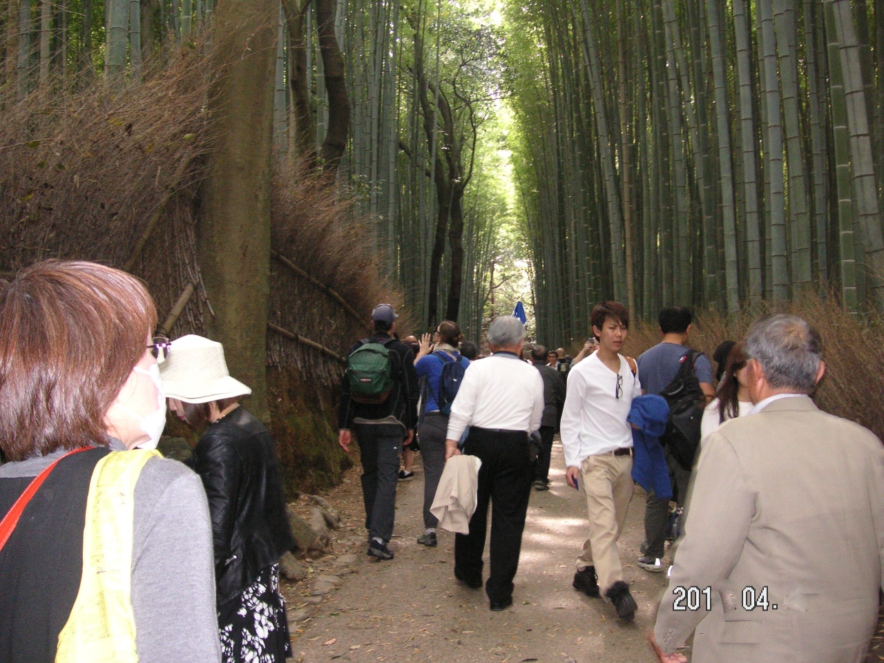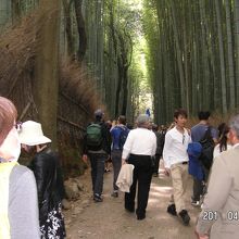 天龍寺の庭園参拝を終え、北門左端から出て二尊院の方向に徒歩で向かうときに、見事な竹林の通路がありました、これが竹の寺だったようです。外人を含めた多くの団体観光客に交じって左右の景色を眺めながら、少しゆるいが坂道を上りお寺を参拝しました。