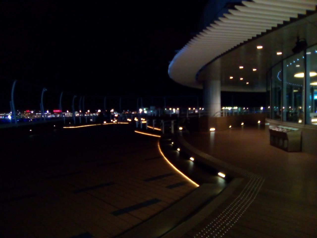 夜の飛行機もまた、おつなものです。昼に比べると人は少なく、夜空を満喫できるスポットです。都会の光を見るもよし、飛行機の光を追いかけるもよし、星の光が見えにくいですがデートなどにもよいかもしれません。風が強く寒い時には、展望デッキに出る手前で円形のガラス張りの部屋があるのでそこから見るのもよいでしょう。